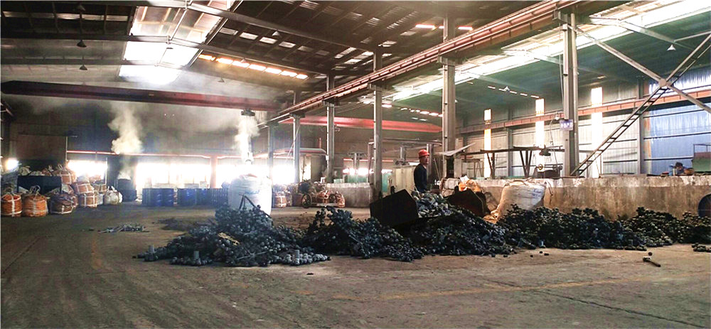 ★ 公司占地面積60畝,建有一萬(wàn)余平米的標(biāo)準(zhǔn)化鋼構(gòu)廠房。公司擁有先進(jìn)、完善的制造及檢測(cè)裝備,主要生產(chǎn)設(shè)備有鐵模覆砂鑄球自動(dòng)生產(chǎn)線、推桿式自動(dòng)油淬生產(chǎn)線,以及中頻感應(yīng)電爐、熱處理電阻爐等,具有年產(chǎn)各類(lèi)鉻系鑄球2萬(wàn)余噸的能力